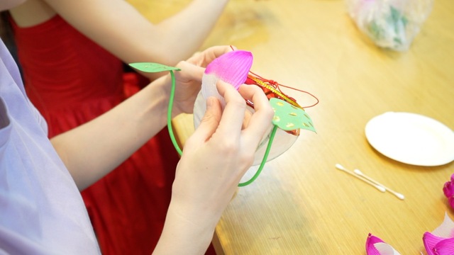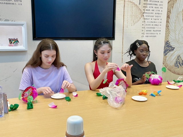 体验过程中,学生们不仅亲手尝试制作,也深入了解了非遗文化背后的技艺与故事。俄罗斯籍的学生徐开熙说:“第一次做花灯,过程简单却效果惊艳!”作为艺术管理专业的学生,她表示对中国传统文化产生了浓厚兴趣,希望把作品带回家乡,让更多人了解中国非遗。马来西亚籍学生吕佩仪感叹花瓣粘贴的工艺讲究:“每层色彩和高低都有学问,非常神奇!”马来西亚籍学生谭子甜虽然觉得手工制作不易,仍喜悦地表示:“能亲身体验非遗,真的很自豪。”