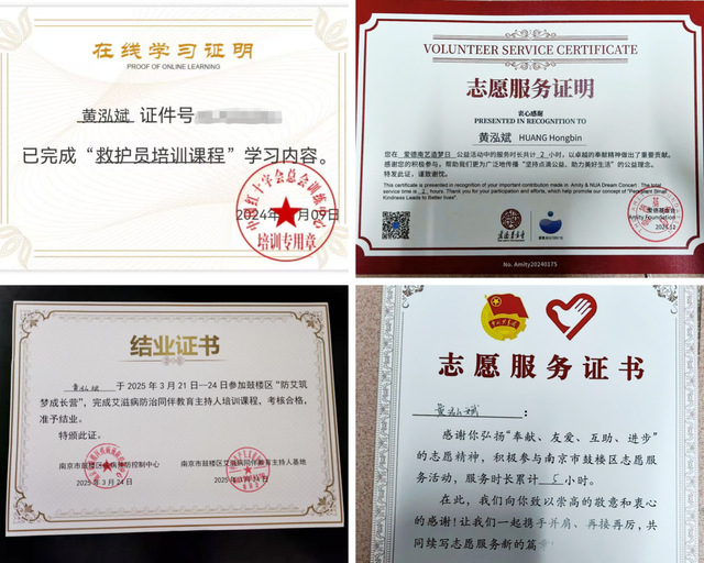 黄泓斌与中国的缘分,始于对笙演奏的热爱。因向往南京艺术学院的古典民乐课程,他选择来华深造。在校园学习生活中,他不仅在专业上勤奋努力,更在课余积极投身公益志愿服务工作,成为江苏省红十字会的一名国际志愿者。“我小学就加入了马来西亚红十字会。进入南艺后,进一步系统学习了急救、防艾和同伴教育相关知识与技能,考取了CPR+AED心肺复苏培训证书,还当选校红十字会主持人部副部长。”他笑着说,“帮助他人早已成为我的习惯。”