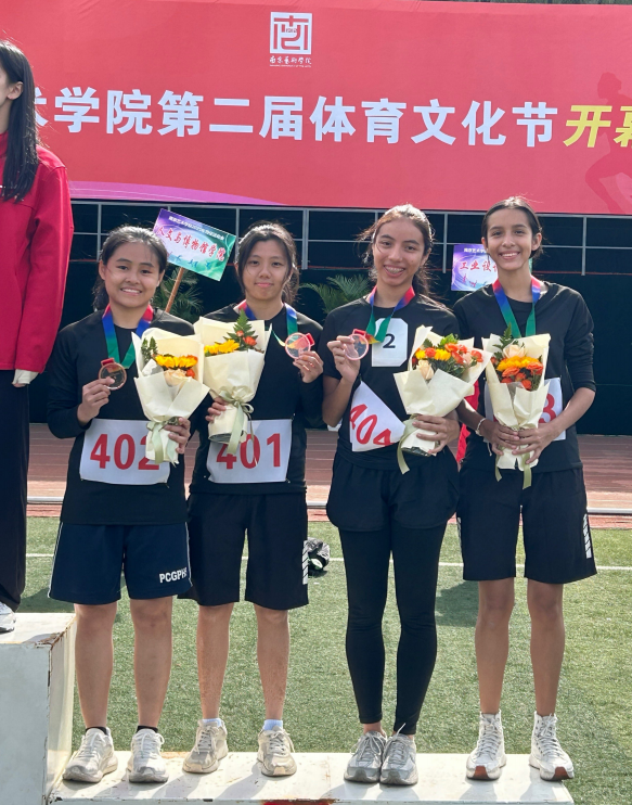 在女子4×400米接力赛中,萨尔瓦多籍学生丹妮、莫拉,以及马来西亚籍学生萧欣霈、彭紫薇组成了参赛队伍。赛前,她们提前反复练习交接棒环节。作为第二棒选手,彭紫薇赛后说道:“每次交接棒都像传递信任,我们在这场比赛中赢得了第三名,与来自不同国家的队友并肩作战一起跑向终点的快乐,比奖项更珍贵。”