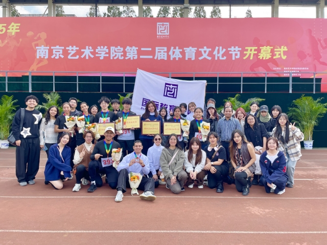 10月24日至25日,南京艺术学院成功举办第二届体育文化节暨2025年田径运动会。国际教育学院全体师生以特色方阵亮相开幕式,并在本届赛事中荣获“最佳组织奖”,同时取得“团体总分第四名”“女子团体总分第三名”“男子团体总分第六名”的佳绩。学生个人与团体项目同样表现优异:马来西亚籍学生蔡盈微摘得女子跳高冠军;马来西亚籍学生郭肯儒荣获男子400米亚军;马来西亚籍学生欧阳为诚获得男子铅球第四名;男、女4×400米接力队双双斩获第三名。这些成绩充分展现了国际教育学院学生的体育实力和团队协作能力。