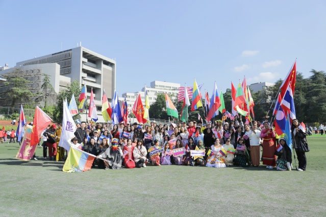 开幕式上,国际教育学院方阵队列有序走过主席台,两侧旗手高举各国国旗,色彩交织随风飘扬。学子们迈着整齐有力的步伐并齐声高喊“我的青春,我的南艺。I Love You!”响亮的口号传递出青春的朝气与对学校的热爱。方阵站定后,16名国际学生身着本国传统服饰依次登场展示,独特的服饰与自信的姿态,充分展现了学院的国际化氛围及学子们昂扬向上的精神风貌,赢得现场阵阵掌声。