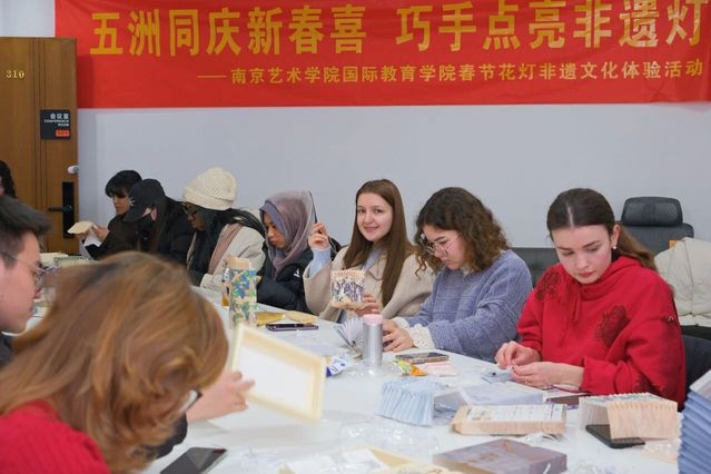 春潮涌动处,文明交汇时。春节作为中华民族传统节日,不仅是维系民族情感的精神纽带,更是向世界展示中华优秀传统文化的重要窗口。2月12日,南京艺术学院国际教育学院以“五洲同庆新春喜 巧手点亮非遗灯”为主题,举办春节花灯非遗文化体验活动,让来自全球各地的国际学生在指尖流转的非遗文化中,触摸中华文明的精神内核,在跨文化的深度互动中,构建起心相通、情相融的文明桥梁,为中外文化交流互鉴注入青春力量。