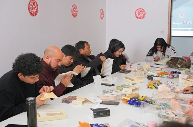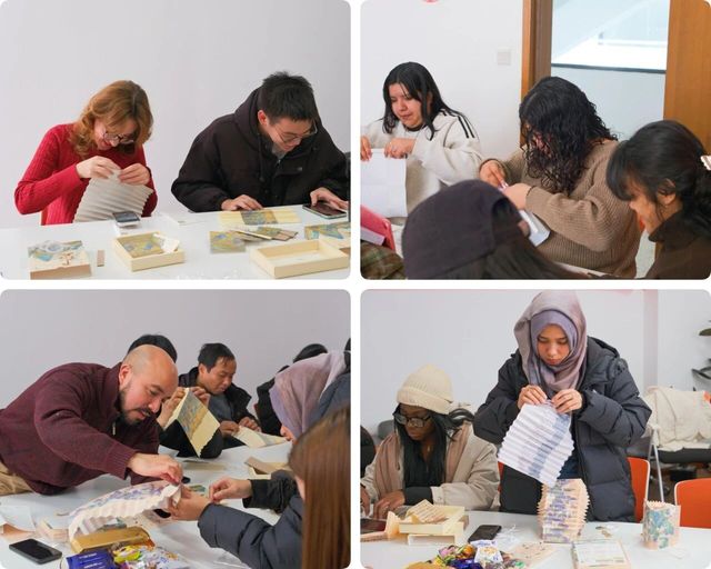非遗是跨越时空的文化密码,更是文明对话的通用语言。此次花灯制作体验,以青绿山水的清雅意境、书法艺术的遒劲风骨为载体,将极具代表性的中国非遗技艺融入节日创作。大家围坐一堂,或端详书画意蕴,或钻研折叠技法,或分享创作心得,一张张印有传统书画的画纸,在跨国学子的指尖蜕变为一盏盏寓意吉祥的花灯,这是非遗文化的活态传承——当书画的东方意境与异国学子的审美视角相遇,非遗便不再是尘封的技艺,而是成为连接不同文明的情感纽带,让中国传统文化在实践体验中深入人心。